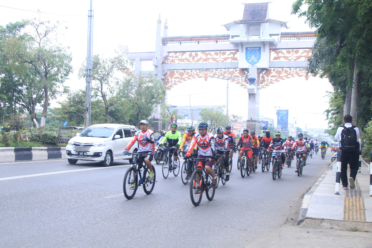 Kegiatan Olahraga Bersama dan Gowes Gembira, dipimpin langsung oleh Kapolresta Banjarmasin, Kombes Pol Sumarto.