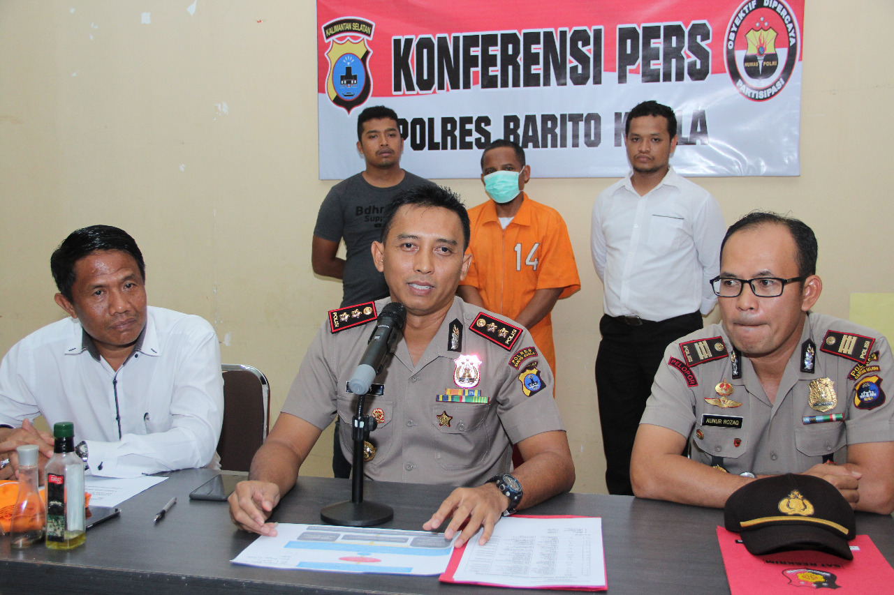 “Iya, tersangka menjebak para siswa mengaji dengan via jejaring sosial Whatsapp untuk datang ke rumah pelaku,” kata Kapolres Barito Kuala, AKBP Bagus Suseno didampingi Kasat Reskrim AKP Edy Yulianto dan Kapolsek Tamban AKP Aunur Rozaq saat jumpa pers, Senin (18/11/19) sore.