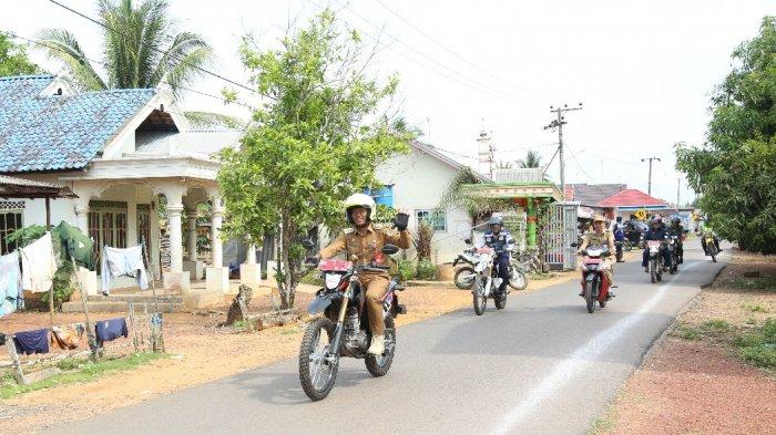 Dalam perjalanannya, orang nomor satu di Tala tersebut berkeliling ke desa-desa dengan mengendarai sepeda motor trail di tengah guyuran hujan.