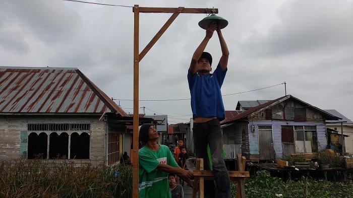 Hal itu seiring telah terpasangnya sejumlah lampu penerangan di sepanjang titian kayu RT 12 dan 13 Murung Selong Kelurahan Sungai Lulut Kecamatan Banjarmasin Timur.