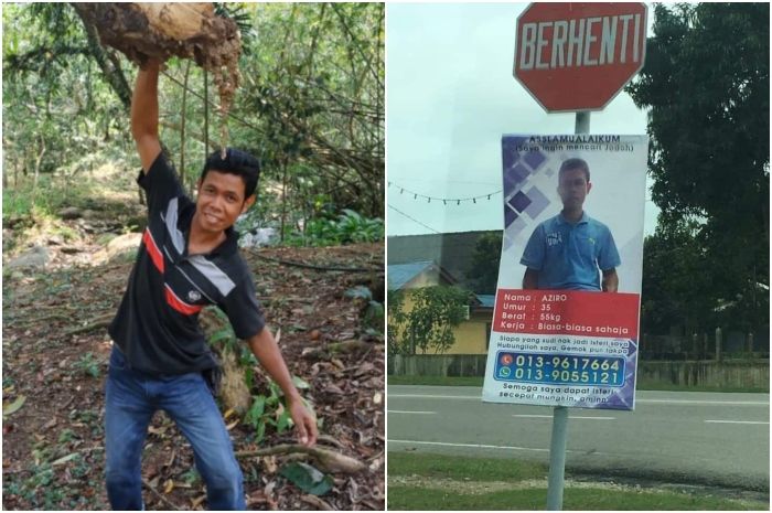 Noor Aziro 935) pria Malaysia yang promosikan dirinya pakai spanduk untuk cari jodoh. (Kolase Malay Mail)