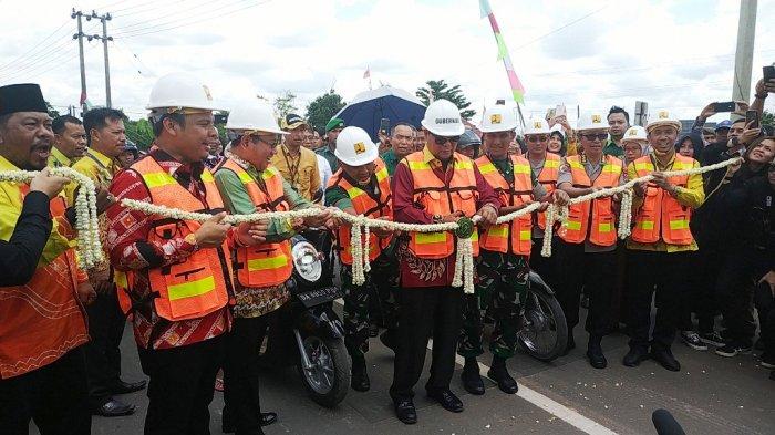 BANJARMASINPOST.CO.ID, BANJARBARU - Pemencetan tombol sirine dan pengguntingan untaian bunga serta penandatangan prasasti jembatan Bincau Sekumpul Ujung, Kahupaten Banjar, oleh Gubernur Kalsel, H Sahbirin Noor menandai diresmikannya jembatan yang merupakan akses penting menuju kubah Guru Sekumpul, di Martapura, Kamis (20/2/2020).