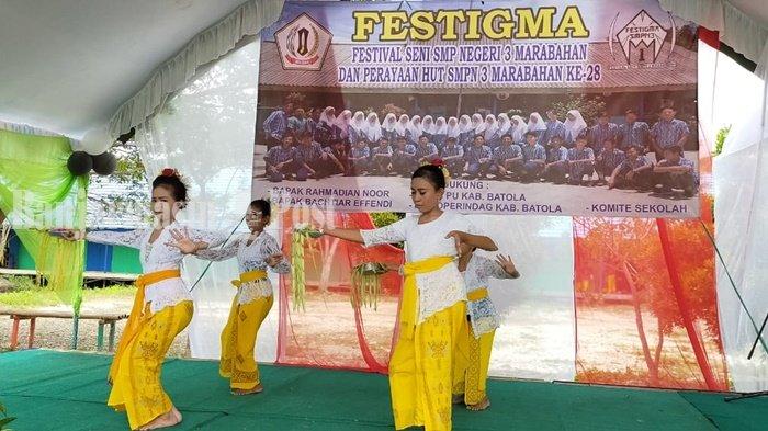 BANJARMASINPOST.CO.ID, MARABAHAN - Ada atraksi yang menarik dalam Festival Seni SMPN 3 Marabahan (Festigma) Kabupaten Barito Kuala (Batola), Kalsel, pada milad ke-28 SMPN setempat.