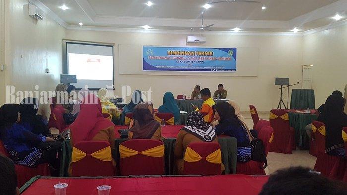Bimbingan teknis itu berkenaan dengan pembuatan RPJMDes terhadap responsif gender di Aula Hotel Tapin, Jalan Brigjend Hasan Basri, Kelurahan Rantau Kiwa, Kecamatan Tapin Utara, Kalsel, Selasa (3/3/2020).