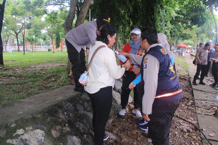 Kemudian juga pemberian antiseptic handrub baik kepada anggota dan juga masyarakat yang ada di lokasi. Usai di jalan Anang Adenansi petugas pun meluncur le halaman Terminal Embarkasi Penumpang Penumpang Pelabuhan Trisakti Banjarmasin di Jalan Barito Ilir, Kecamatanm Banjarmasin Barat.