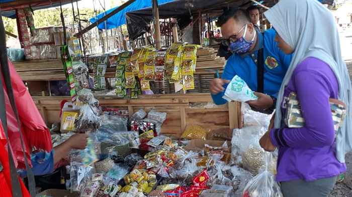 Sebanyak 700 pcs masker kain sasirangan ludes dibagikan kepada pedagang yang menjual sayuran dan pedagang kelontongan di los di Pasar Keraton Rantau.