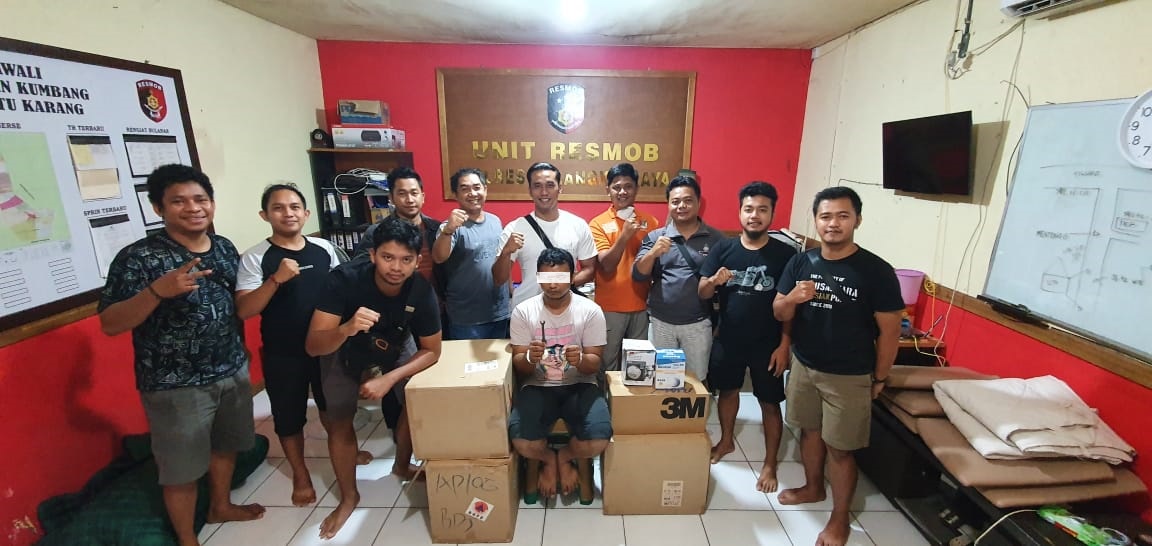 BANJARMASINPOST.CO.ID PALANGKARAYA - Tim Resmob gabungan Polresta Palangkaraya, Polsek Pahandut dan Polda Kalteng, Minggu (12/4/2020) berhasil menangkap seorang pelaku maling ribuan masker yang disimpan di Gudang Farmasi Kantor Dinkes Kalteng.