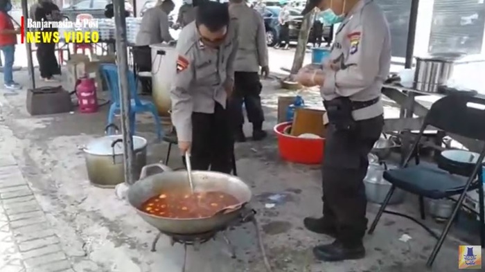 Kegiatan ini berlangsung di halaman Mesjid Jami Sungai Jingah Banjarmasin dimana puluhan petugas dari Brimob Polda Kalimantan Selatan memasak makanan.