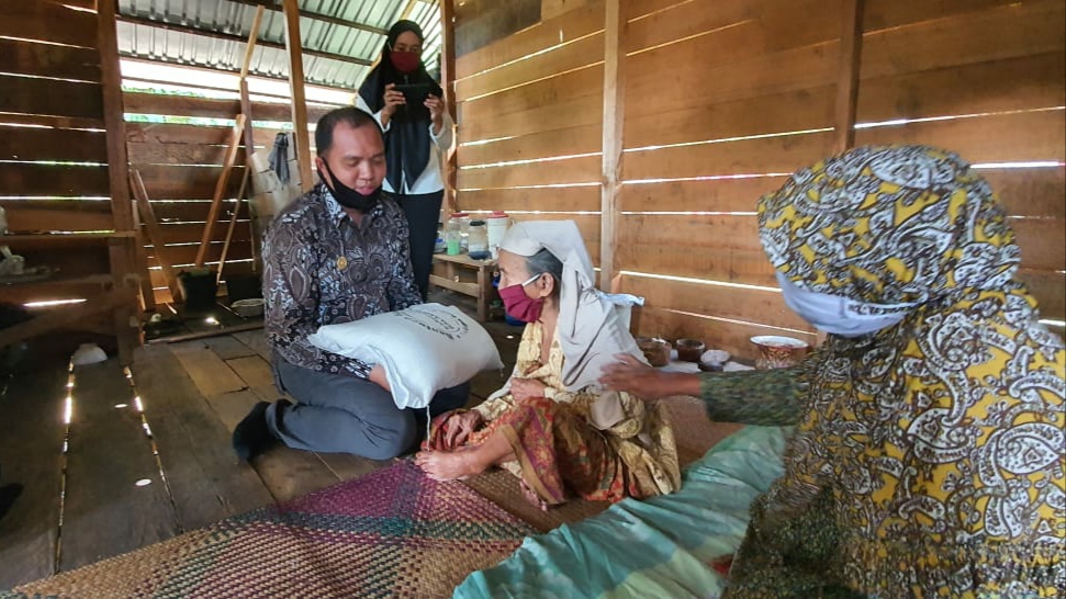 Mereka juga sekaligus menyerahkan bantuan beras kepada masyarakat dan membagikan secara door to door.