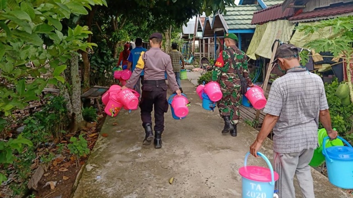 Bhabinkamtibmas dan Babinsa di Kabupaten Kapuas Bagikan Ember ke Warga
