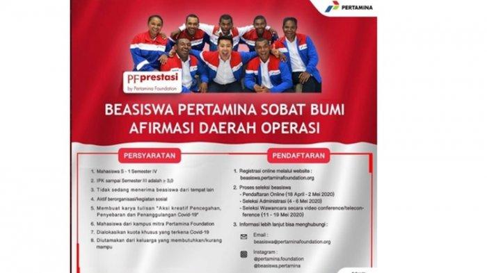 Menurutnya, Foundation resmi mengumumkan jenis-jenis Beasiswa Pertamina Sobat Bumi Tahun 2020.