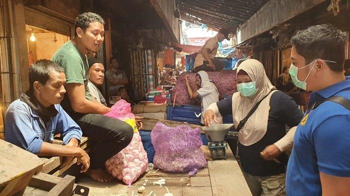 Kali ini petugas turun ke Pasar Harum Manis Banjarmasin mengecek ketersedian dan harga gula serta bawang putih.
