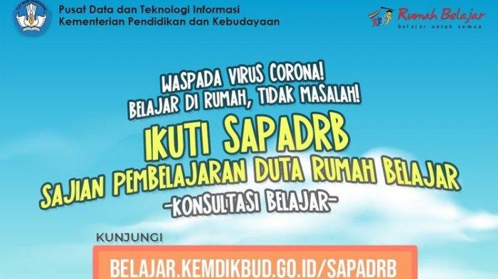 BANJARMASINPOST.CO.ID - Kementerian Pendidikan dan Kebudayaan (Kemendikbud) selaian menyajikan tayangan Belajar dari Rumah di TVRI, juga menyediakan layanan bimbingan belajar (bimbel) daring (online) melalui Sajian Pembelajaran Duta Rumah Belajar.