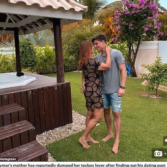 Ibu Nyemar, Nadine Goncalves (kiri), berpelukan dengan kekasihnya yang jauh lebih muda, Tiago Ramos. Hubungan mereka tak berlanjut karena Tiago diketahui menjalin hubungan dengan sejumlah pria.(INSTAGRAM)