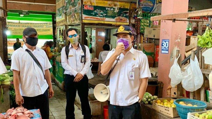Kabid PSDP Disperdagin Kota Banjarmasin, Ichrom Muftezar, memimpin sosialisasi untuk mengimbau pedagang dan masyarakat patuhi jam operasional pasar selama PSBB.