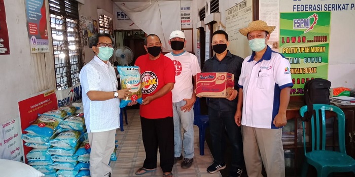 BANJARMASINPOST.CO.ID, BANJARMASIN - BPJamsostek Cabang Banjarmasin salurkan bantuan sembako melalui Federasi Serikat Pekerja Metal Indonesia (FSPMI) Provinsi Kalimantan Selatan (Kalsel) bagi sejumlah pekerja yang dirumahkan, Jumat (1/5/2020) lalu.