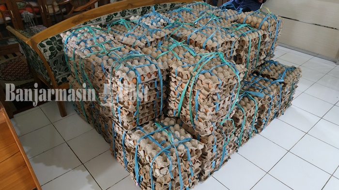 Lurah Manarap Lama, Irham Yamin, S.Sos, mengatakan kepada Banjarmasinpost.co.id, logstik paket sembako itu terdiri dari telur dan beras.