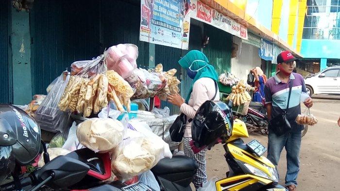 Warga Angsau ini mengatakan rata-rata harian membawa sekitar 400 hingga 500 kue. Ia menitipkan kue tersebut pada langganannya yakni para pedagang sayur keliling yang tiap pagi standby di halaman depan eks Bajuin Plaza.