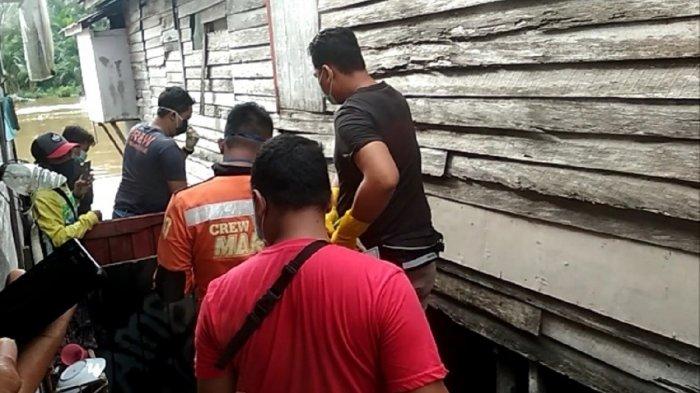 Korban ditemukan tidak berbaju dan mengapung di belakang rumah warga tepat pukul 06.00 WITA.
