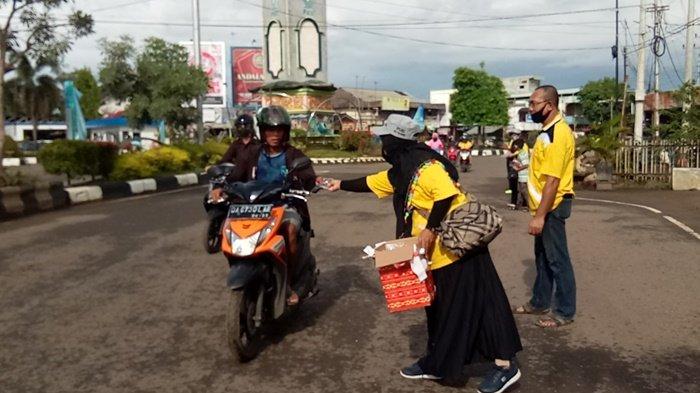 Aksi itu digelar di bundaran Tugu PKK, Pelaihari, Senin (18/5/2020) pukul 09.00 Wita. Kalangan pengendara yang melintas di kawasan tersebut pun antusias karena mendapatkan masker yang saat ini menjadi barang teramat penting.