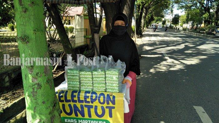 Wabah corona atau Covid-19 membuat pedagang yang berjualan klepon di tepi Jalan Martapura mengalami penurunan lebih 50 persen.