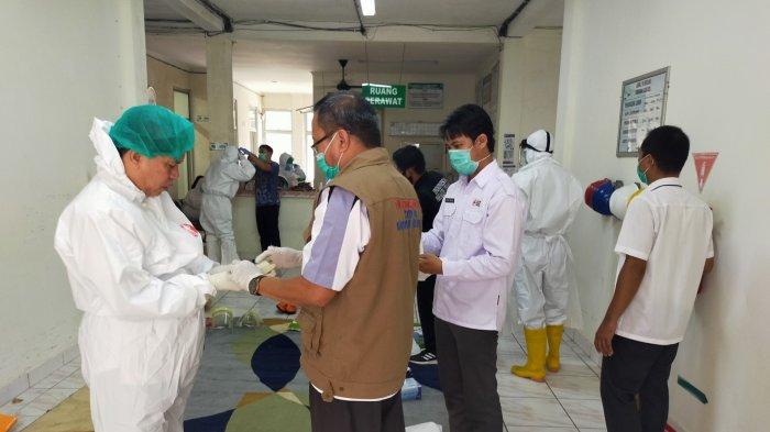 Sementara tim medis mensterilkan ruangan dan alat sebagai pencegahan penyebaran Covid 19.