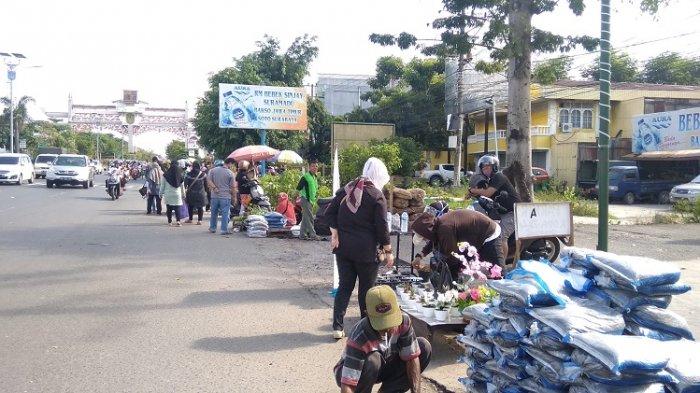 Pasca-PSBB di kabupaten Banjar pedagang tanaman hias kembali ramai menggelar jualannya di pasar ahad atau dikenal Pasar Pal 7 Kertak Hanyar