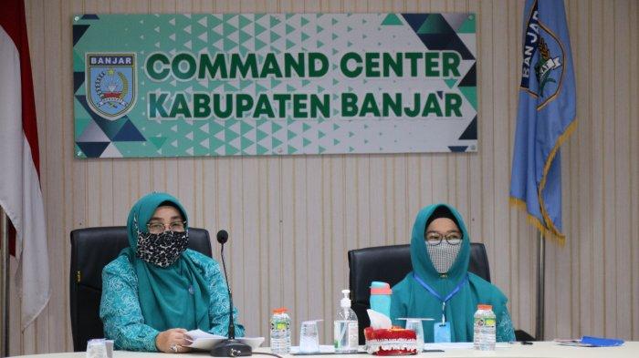 Ketua Tim Penggerak PKK Kabupaten Banjar Hj Raudathul Wardiyah beserta jajaran menghadiri kegiatan Sosialisasi Peraturan Gubernur Tentang Peningkatan Kualitas Keluarga via Zoom Meetings di Command Center Barokah, Martapura, Kamis (18/6/2020).