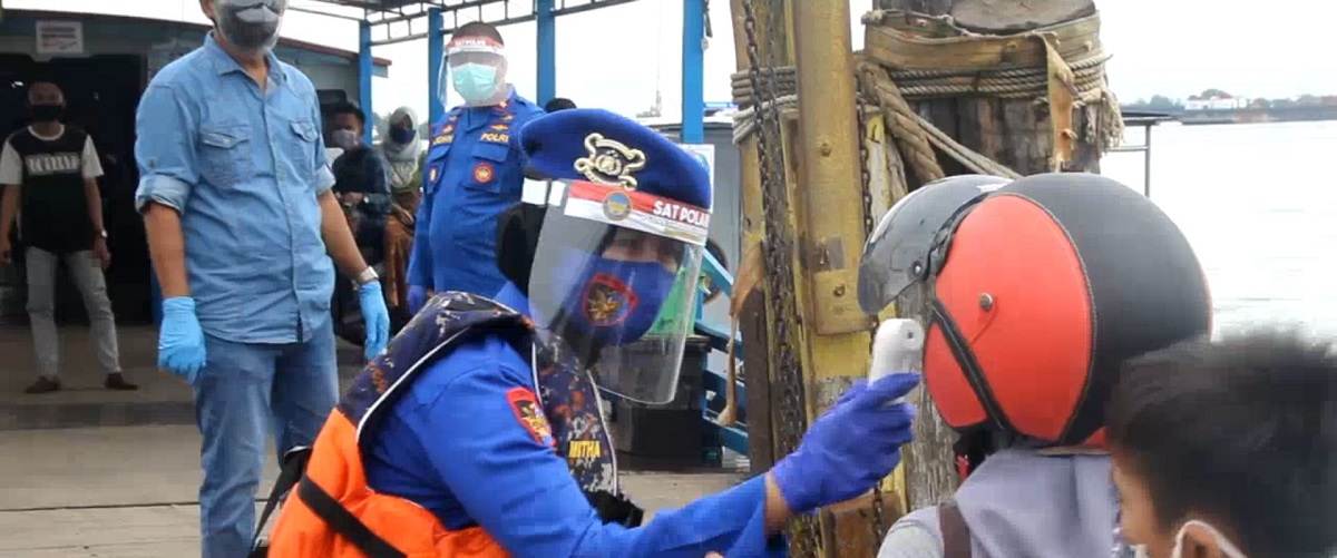 Suhu Tubuh Pengguna Jasa Angkutan Fery Dicek, Satpolair Polresta Banjarmasin Sosialisasikan ini