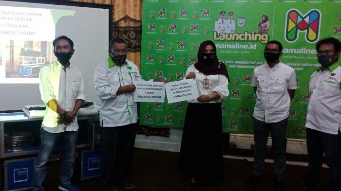 Disperindag Kabupaten Banjar serahkan bantuan tenda dan rombong kepada HKTI untuk disalurkan ke Perkumpulan Pedagaang Ternak Terpadu Gambut.
