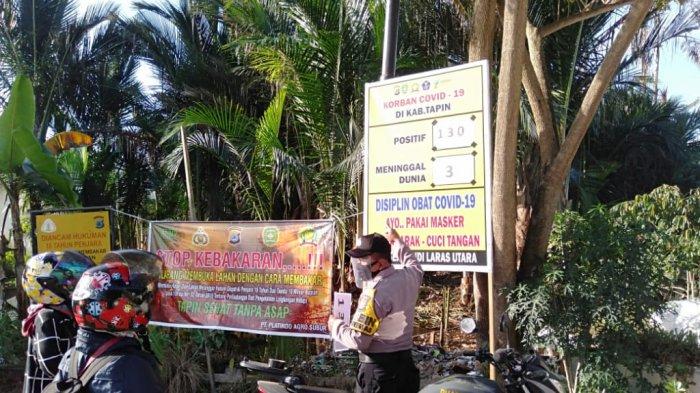 Sedikitnya ada di enam titik yang mudah dilihat masyarakat, jajaran Polsek Candi Laras Utara (CLU) memasang spanduk imbauan sekaligus angka data korban covid-19 di Kabupaten Tapin.