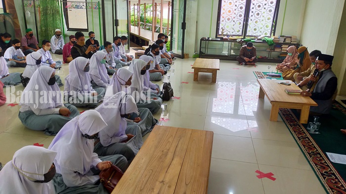 BANJARMASIN POST.CO.ID, BANJARMASIN - Sebelum pembelajaran Tahfidz Qur'an dilaksanakan di SMKN 3 Banjarmasin, dilakukan silaturrahmi dengan kepala sekolah, Mohammad Ali Muksin SPd,, MM, pengelola Tahfidz, orangtua, siswa program tahfidz di Masjid el Rusydi, Senin (13/7/2020) pagi.