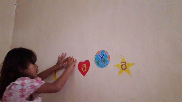 Sebagaimana membuat hiasan dinding dari kertas, bocah perempuan lima tahun ini mesti dibimbing ibunya bagaimana membuat pola, menggunting, mewarna dan menempel.