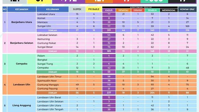 Persentase sembuh di Kota Banjarbaru mencapai 76,14 persen dan meninggal 6,19 persen.