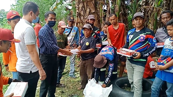Anggota tim pemenangan, H Syarwani langsung menyantuni keluarga korban serta membagikan makanan bagi relawan yang sedang melakukan pencarian di sekitar sungai.
