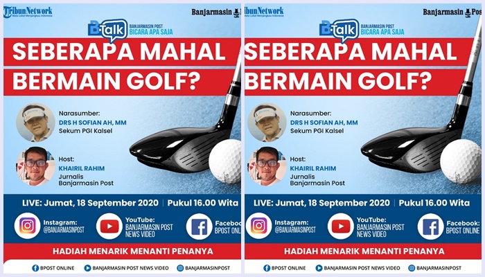 Pada acara Btalk, Banjarmasin Post bicara apa saja, Jumat 18 September 2020 Pukul 16.00 wita, bakal hadir Sekretaris Umum Persatuan Golf Indonesia (PGI) Kalimantan Selatan, Drs H Sofian AH, MM.