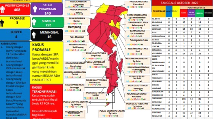 Berdasar data terbaru, hasil laporan pemantauan kasus Covid-19, Dinas Kesehatan Kotabaru per tanggal 6 Oktober 2020, dimungkinkan angka terus bertambah menyusul rendahnya tingkat kesembuhan.