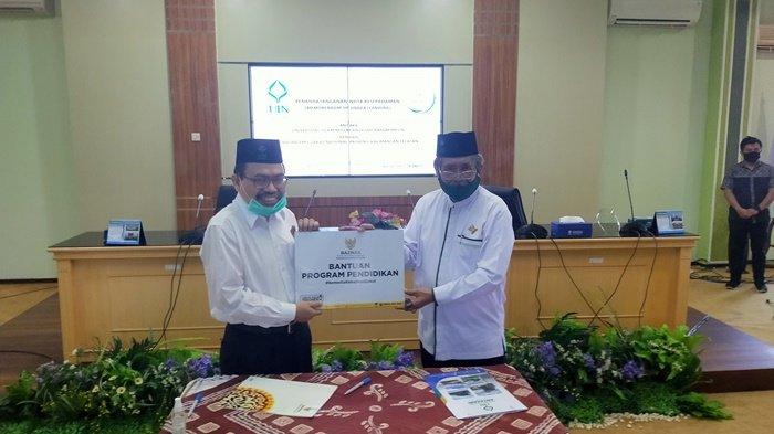 BANJARMASIN POST.CO.ID, BANJARMASIN - Badan Amil Zakat Nasional (Baznas) Kalimantan Selatan secara simbolis menyerahkan bantuan Program Pendidikan kepada Universitas Islam Negeri (UIN) Antasari Banjarmasin di lantai 3 Gedung Rektorat, Senin (26/10/2020).