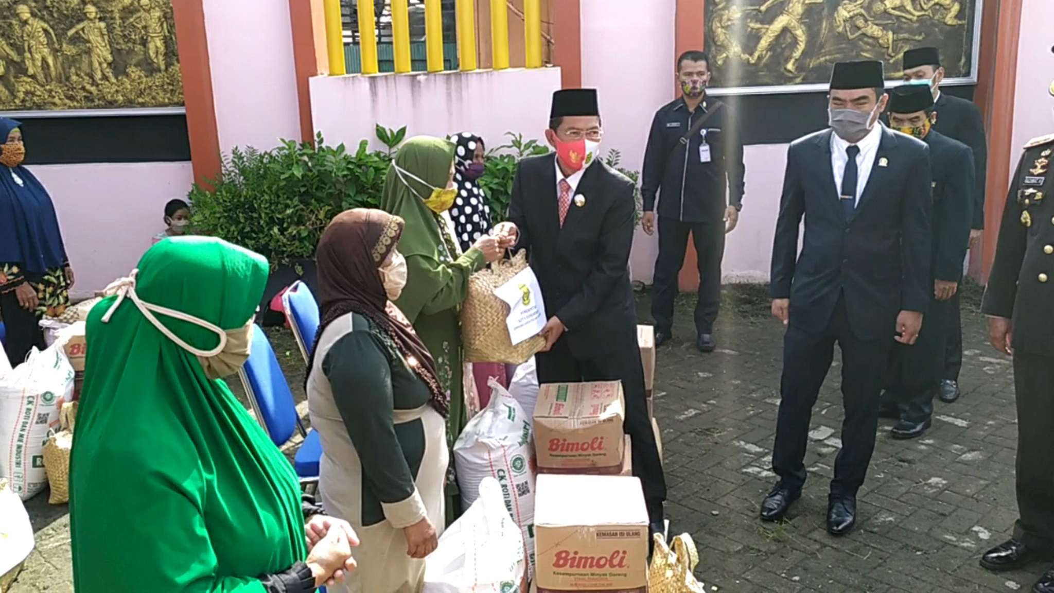Dikesempatan itu sembako yang diterima oleh Keluarga Veteran diserahkan secara simbolis oleh Unsur Forum Komunikasi Daerah (Forkopimda) secara bergantian.