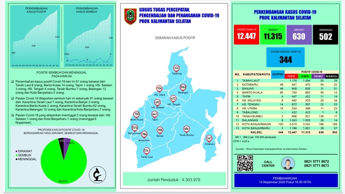 Jumlah tersebut sudah mencakup penambahan warga terkonfirmasi positif yang diumumkan Satgas Penanganan Covid-19 Kalsel sebanyak 51 orang, Sabtu (14/11/2020).
