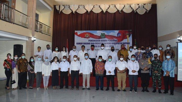 BANJARMASINPOST.CO.ID, KUALAKAPUAS - Saat pengukuhan pengurus Kadin Kabupaten Kapuas masa bakti 2020-2025, dihadiri juga Plt Bupati Kapuas, HM Nafiah Ibnor.