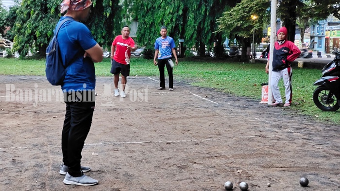 BANJARMASINPOST.CO.ID, BANJARBARU - Olahraga Petanque asal Prancis ini dapat dimainkan satu lawan satu, dua lawan dua maupun tiga lawan tiga, hingga mix tanpa batasan usia.