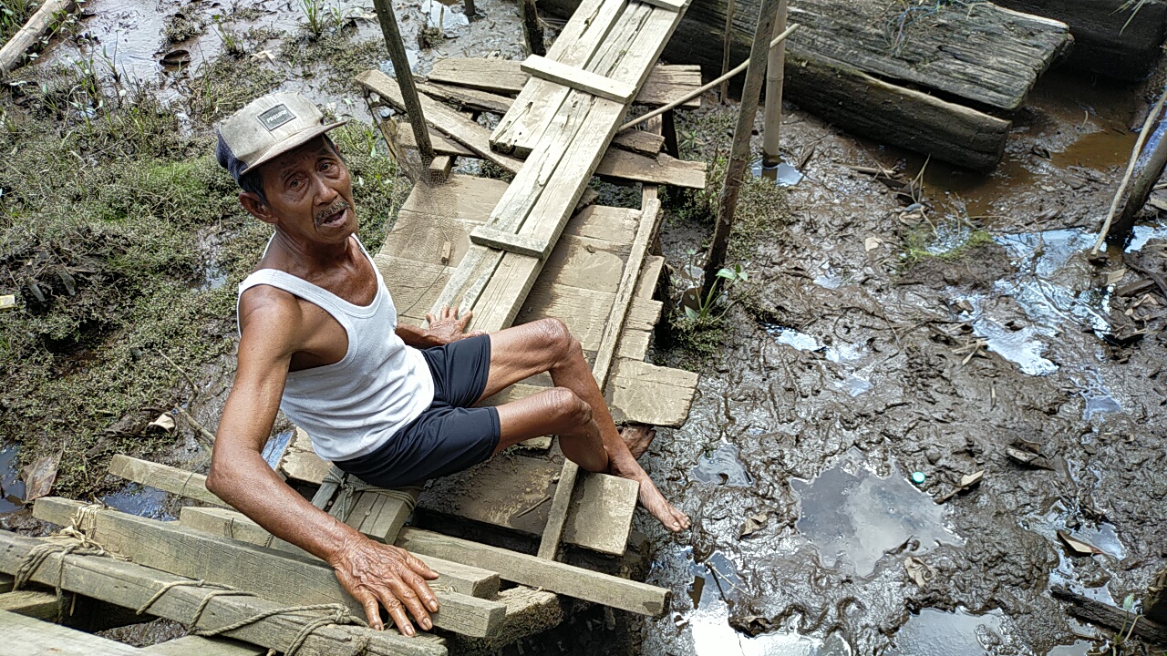 Malam itu air sungai sedang pasang sehingga jembatan belakang rumahnya pun ikut terendam air sungai.