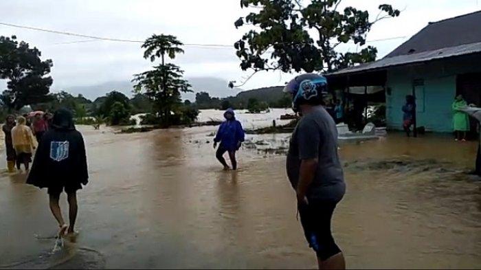 Genangan telah menjamah hingga simpang empat Desa Atuatu-Kunyit-Tirtajaya-Ketapang.