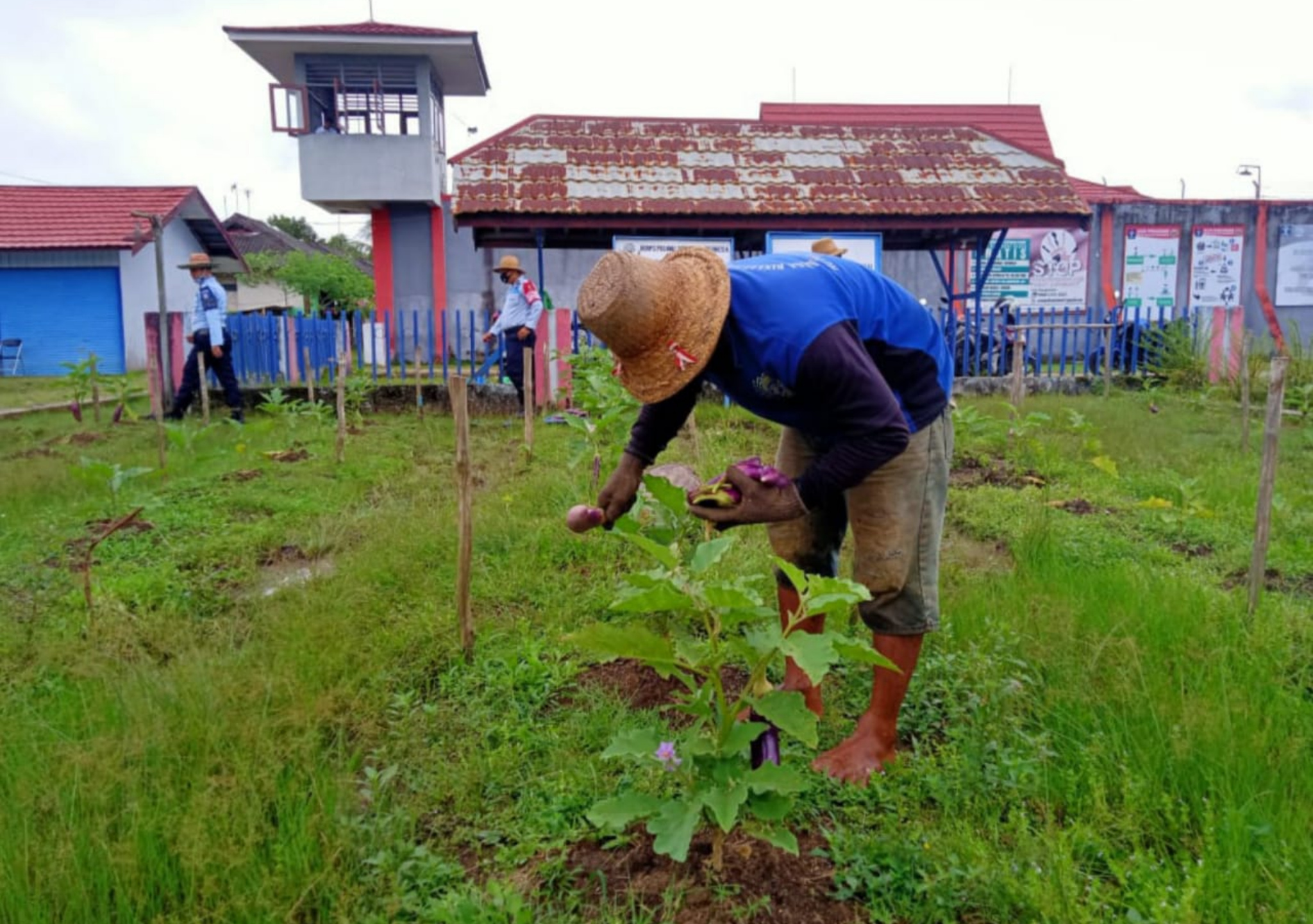 Warga Binaan Rutan Marabahan panen terong dan cabai, mereka mengolah lahan kosong menjadi produktif sekaligus mengasah skill untuk mandiri