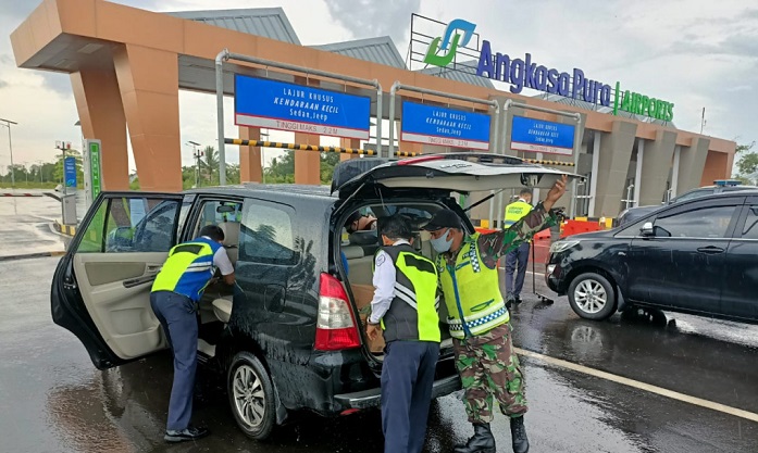 Yang mana, personel airport security di dampingi oleh dua personel Bawah Kendali Operasi (BKO) dan enam personel kepolisian melakukan pemeriksaan di tol gate terhadap kendaraan yang akan masuk ke area Bandara.