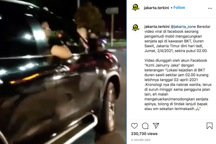 Seperti diketahui, aksi koboi ini terjadi di kawasan Duren Sawit, Jakarta Timur dan viral di mesia sosial. Kejadiannya, MFA diduga menyenggol pengendara motor hingga terjatuh dan menodongkan senjata agar tidak berhenti dan bisa melanjutkan perjalanannya.