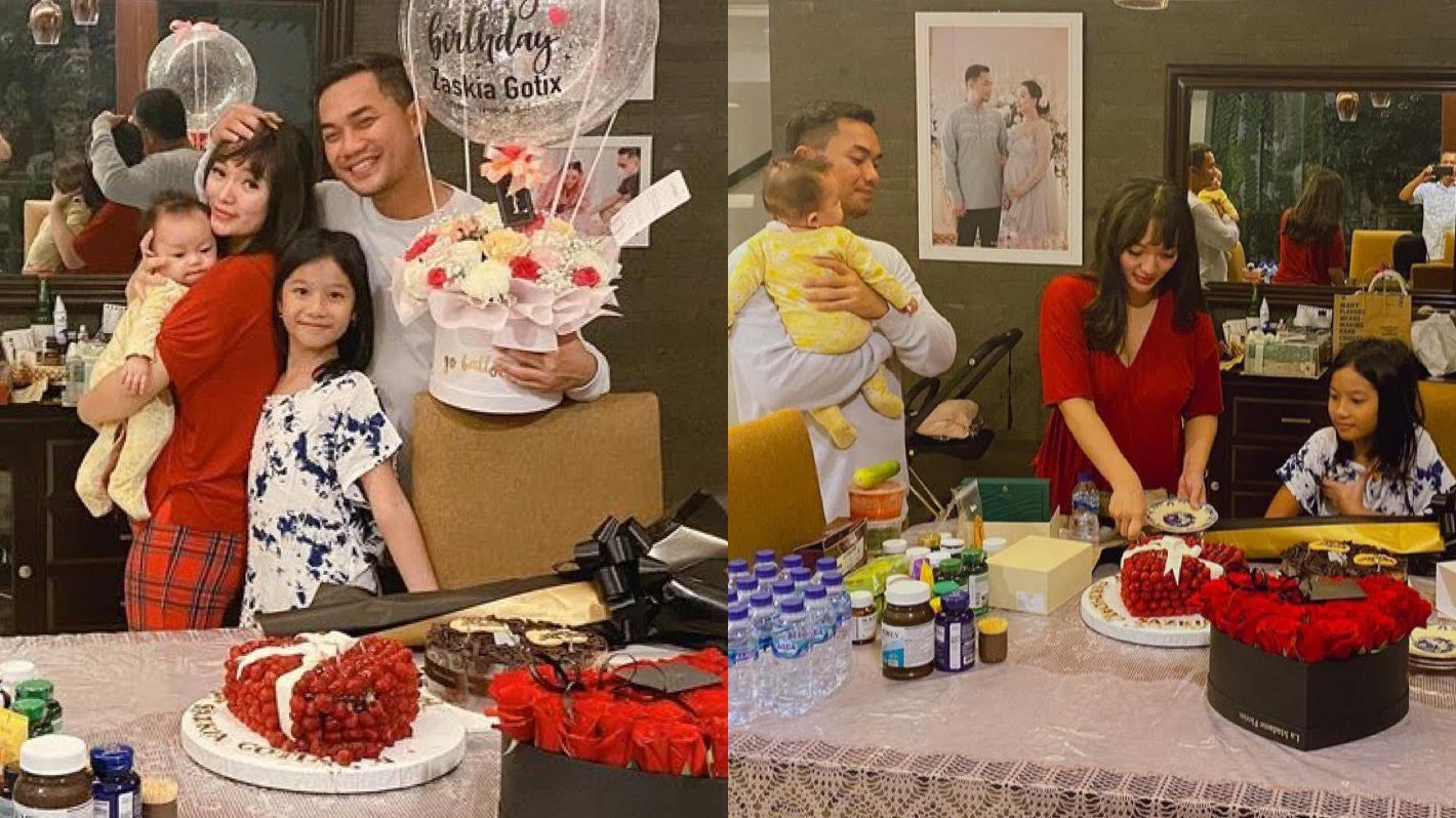 Betapa tidak, kendati hanya perayaan sederhana namun kue tar dan bunga yang dipilih bernuansa merah mawar kesukaan Zaskia Gotik. Ditambah dengan kehadiran Aqila di tengah-tengah mereka.