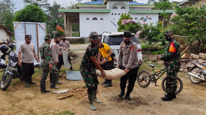 BANJARMASINPOSTCO.ID, RANTAU - Program TNI Manunggal Membangun Desa (TMMD) Ke-111 Kodim 1010/Rantau yang mengerjakan sasaran fisik, nonfisik dan sasaran tambahan, juga melibatkan anggota Polri, Sabtu (19/6/2021).