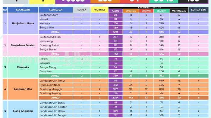 Total di Kota Banjarbaru sampai hari ini menjadi 5.583 kasus, mereka yang sembuh menjadi 5.043 orang dan meninggal jumlahnya 188 orang.